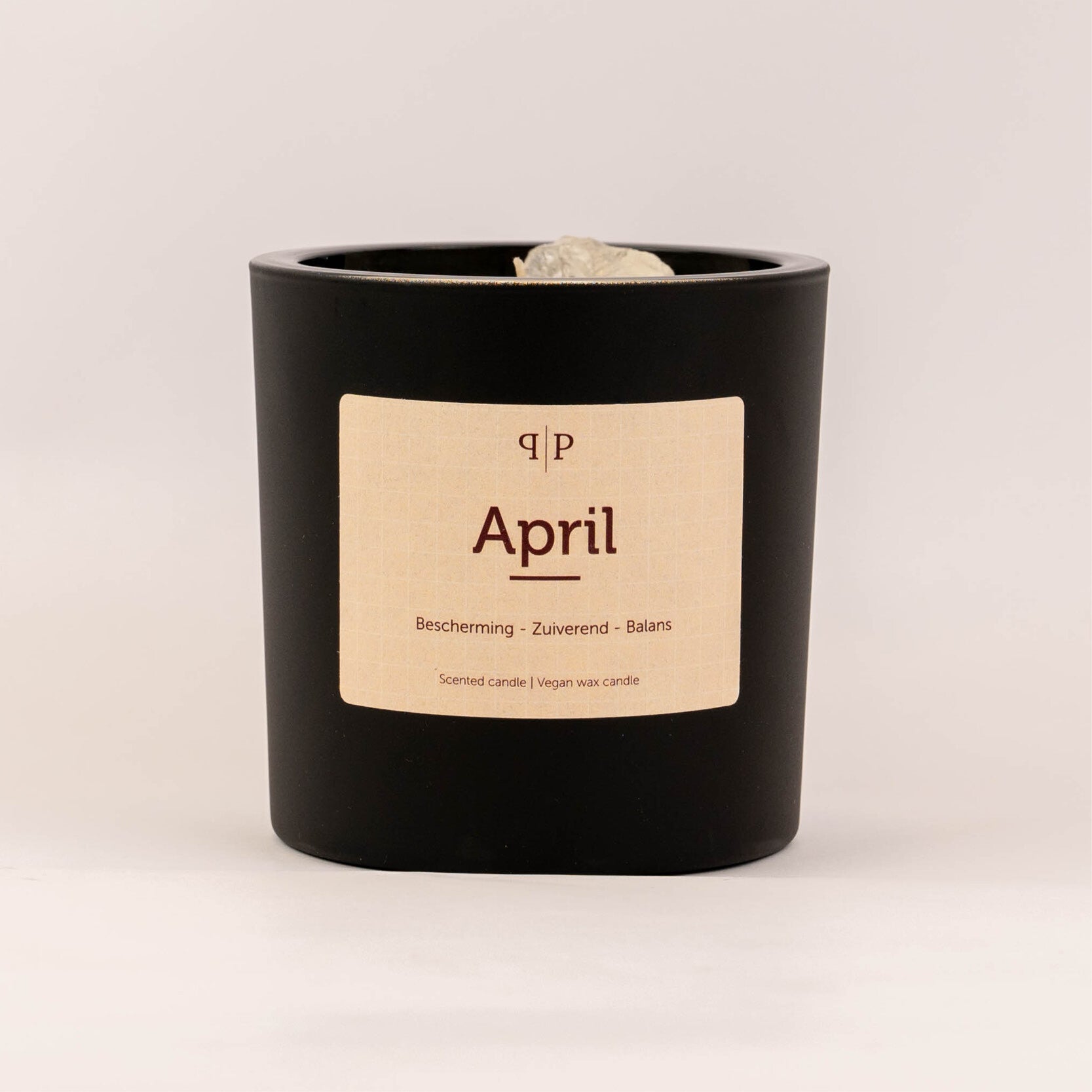Een geurkaars gevuld met bergkristal. Deze steen heeft een grote geneeskrachtige werking. Het reguleert energie en slaat energie op.