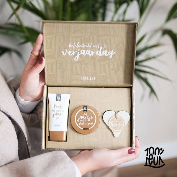 Verras de jarige job met een feestelijk brievenbuscadeau dat zegt: “Fijne Verjaardag!” Of het nu je broer, oma, vriendin of iemand anders is, dit pakketje brengt direct een glimlach op het gezicht van de ontvanger. Met drie fijne items – een zeephart, bodycrème en douchegel – geef je een momentje van verwennerij cadeau. Perfect als je niet in de buurt bent, want dit pakketje past gewoon door de brievenbus. Zo is het extra verrassend én hoeft de ontvanger niet thuis te zijn om jouw felicitatie te ontvangen. Maak hun verjaardag nog specialer met een cadeau dat laat zien dat je aan hen denkt, zelfs van ver weg!