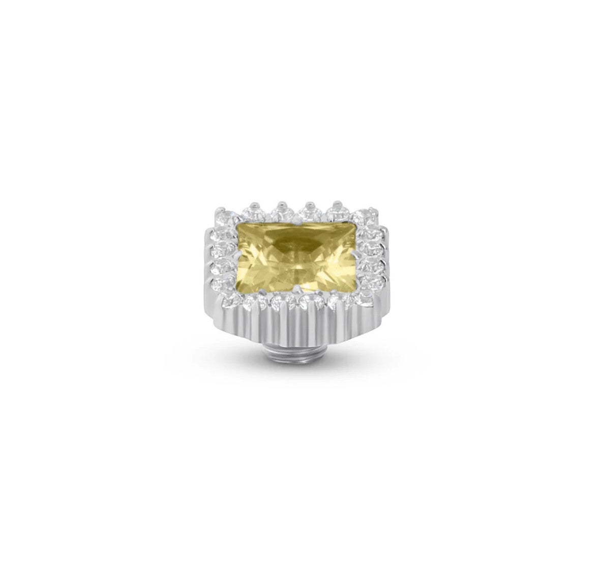 Het Melano Vivid Antique steentje geeft je dat echte juweelgevoel. Deze klassieke vierkante zirkonia steen wordt omlijst door fijne ronde steentjes, waardoor deze steen de feeling heeft van een echt diamanten sieraad. Diamonds are a girl's best friend! Het Antique steentje heeft een doorsnede van 10 mm en is verkrijgbaar in een zilver of goudkleurige plating.
