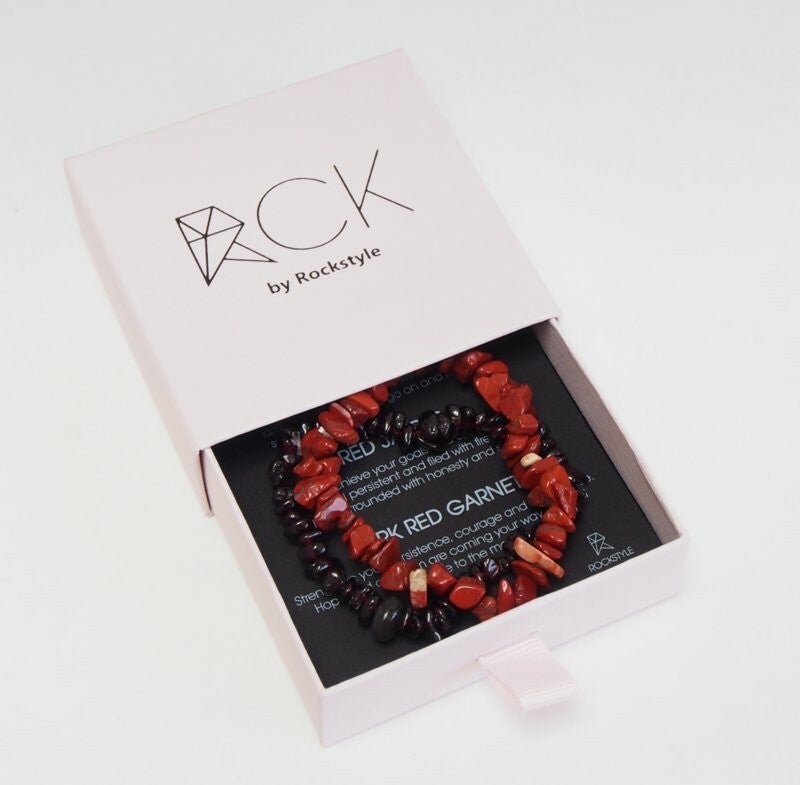 RCK is hét sieradenmerk met edelsteen van Rockstyle. Vol zorg worden alle materialen geselecteerd op kwaliteit en uitstraling. In het mooie doosje zitten twee echte edelsteen armbandjes (met elastiek en goede pasvorm) en ook een kaartje met bovenstaande tekst.